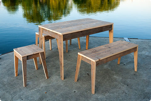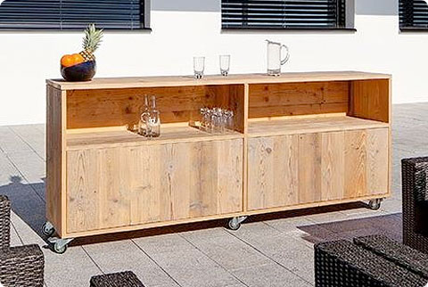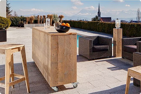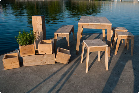 • Sitzgarnitur Kollektion Seebühne – Tisch 140 cm; Bank 120 cm, Hocker